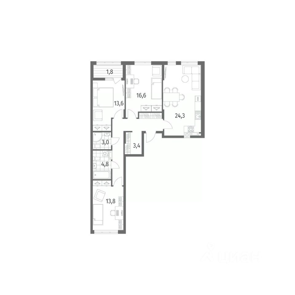 в Дом на Красной от компании ГК "ТРЕСТ". Площадь кухни 24.3 м². Жилой комплекс комфорт-класса "Дом на Красной" расположен в Центральном районе Калининграда на пересечении улиц Красная и Псковская. Жилой комплекс включает в себя два дома высотой 8 этажей. Срок сдачи намечен на 4 квартал 2026 года.