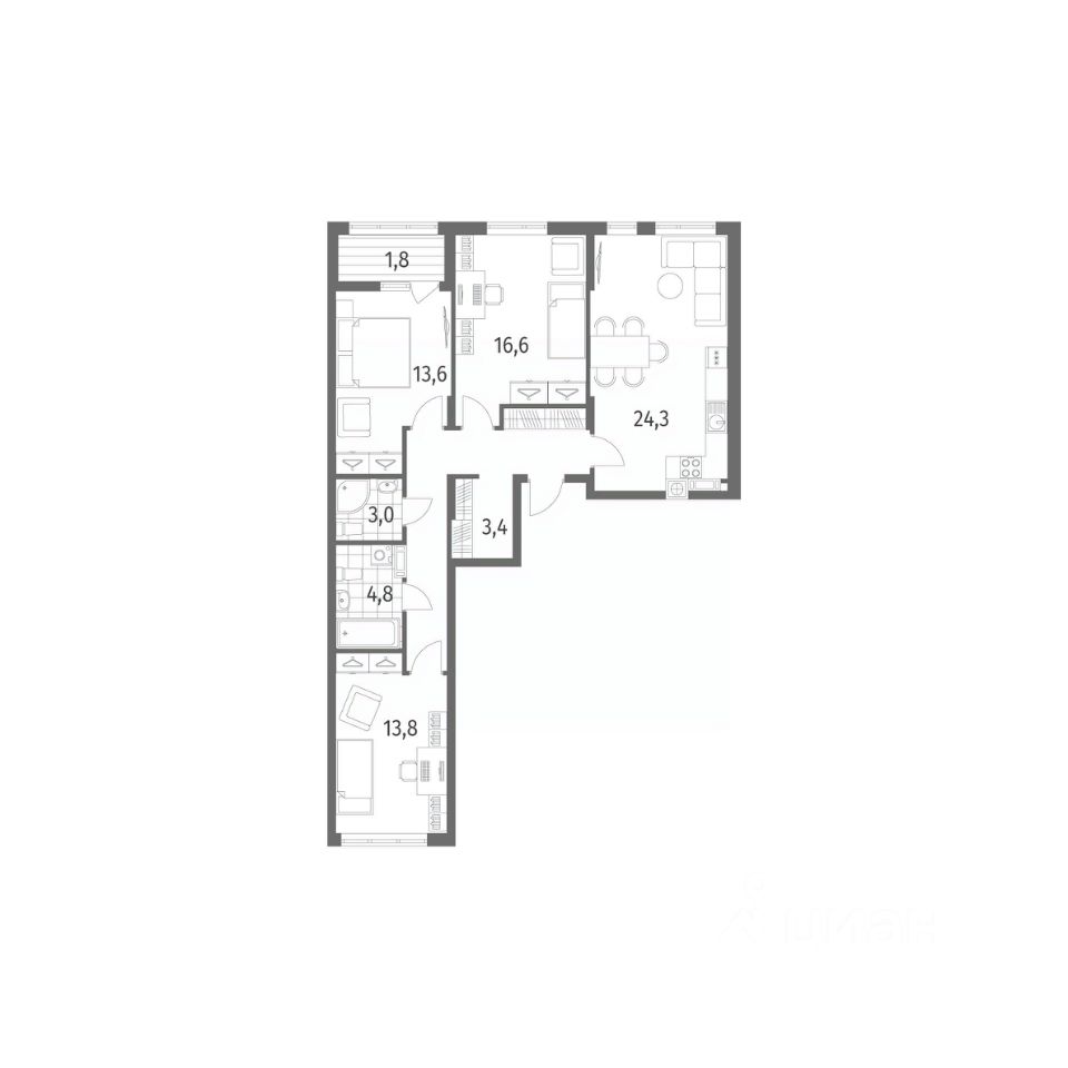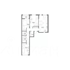 Продается квартира площадью 94.4 м² на 4 этаже 1 секции в Дом на Красной от компании ГК "ТРЕСТ". Площадь кухни 24.3 м².