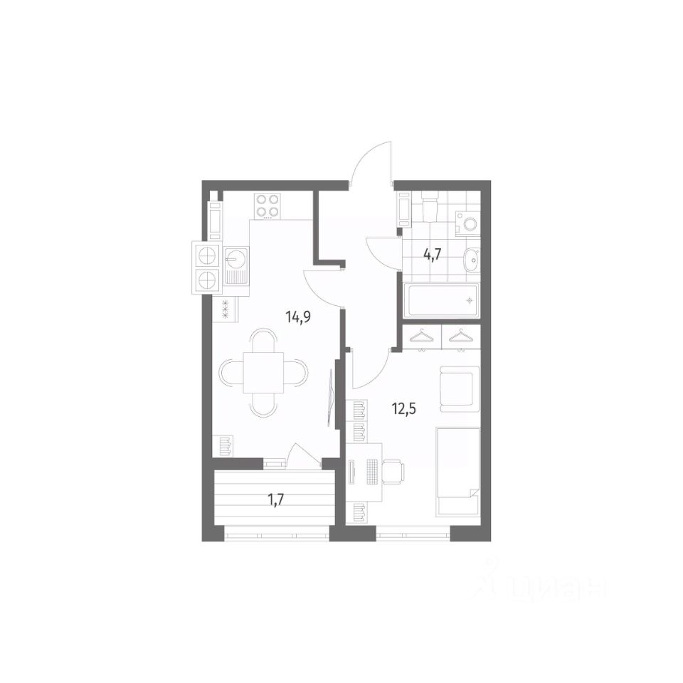 в Дом на Красной от компании ГК "ТРЕСТ". Площадь кухни 14.9 м². Жилой комплекс комфорт-класса "Дом на Красной" расположен в Центральном районе Калининграда на пересечении улиц Красная и Псковская. Жилой комплекс включает в себя два дома высотой 8 этажей. Срок сдачи намечен на 4 квартал 2026 года.