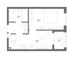 в Дом на Красной от компании ГК "ТРЕСТ". Площадь кухни 13 м². Жилой комплекс комфорт-класса "Дом на Красной" расположен в Центральном районе Калининграда на пересечении улиц Красная и Псковская. Жилой комплекс включает в себя два дома высотой 8 этажей. Срок сдачи намечен на 4 квартал 2026 года.
