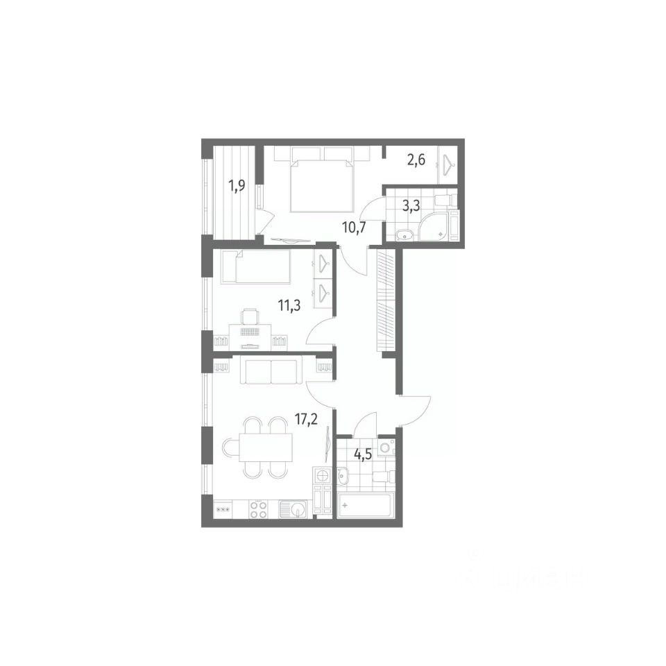 в Дом на Красной от компании ГК "ТРЕСТ". Площадь кухни 17.2 м². Жилой комплекс комфорт-класса "Дом на Красной" расположен в Центральном районе Калининграда на пересечении улиц Красная и Псковская. Жилой комплекс включает в себя два дома высотой 8 этажей. Срок сдачи намечен на 4 квартал 2026 года.