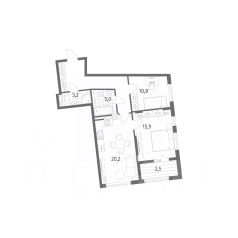 в Дом на Красной от компании ГК "ТРЕСТ". Площадь кухни 20.2 м². Жилой комплекс комфорт-класса "Дом на Красной" расположен в Центральном районе Калининграда на пересечении улиц Красная и Псковская. Жилой комплекс включает в себя два дома высотой 8 этажей. Срок сдачи намечен на 4 квартал 2026 года.