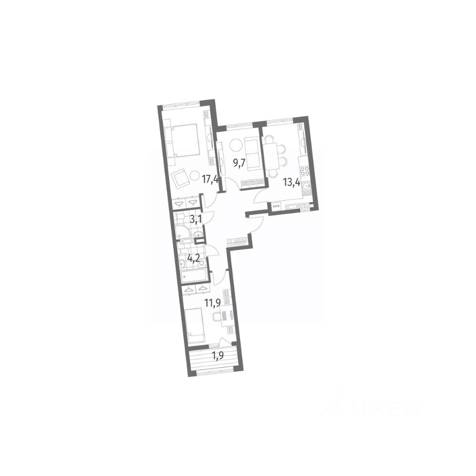 в Дом на Красной от компании ГК "ТРЕСТ". Площадь кухни 13.4 м². Жилой комплекс комфорт-класса "Дом на Красной" расположен в Центральном районе Калининграда на пересечении улиц Красная и Псковская. Жилой комплекс включает в себя два дома высотой 8 этажей. Срок сдачи намечен на 4 квартал 2026 года.