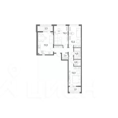 Продается квартира площадью 91.2 м² на 2 этаже 3 секции в Дом на Красной от компании ГК "ТРЕСТ". Площадь кухни 19.9 м².