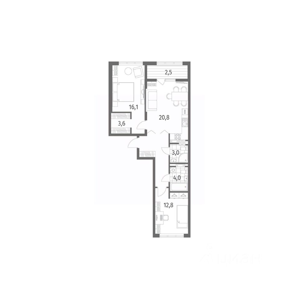 в Дом на Красной от компании ГК "ТРЕСТ". Площадь кухни 20.8 м². Жилой комплекс комфорт-класса "Дом на Красной" расположен в Центральном районе Калининграда на пересечении улиц Красная и Псковская. Жилой комплекс включает в себя два дома высотой 8 этажей. Срок сдачи намечен на 4 квартал 2026 года.