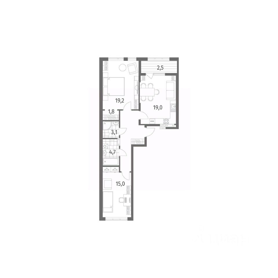 в Дом на Красной от компании ГК "ТРЕСТ". Площадь кухни 19 м². Жилой комплекс комфорт-класса "Дом на Красной" расположен в Центральном районе Калининграда на пересечении улиц Красная и Псковская. Жилой комплекс включает в себя два дома высотой 8 этажей. Срок сдачи намечен на 4 квартал 2026 года.