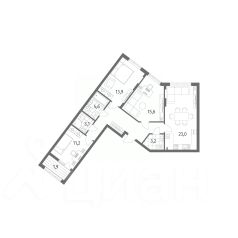 Продается квартира площадью 92 м² на 1 этаже 5 секции в Дом на Красной от компании ГК "ТРЕСТ". Площадь кухни 23 м².