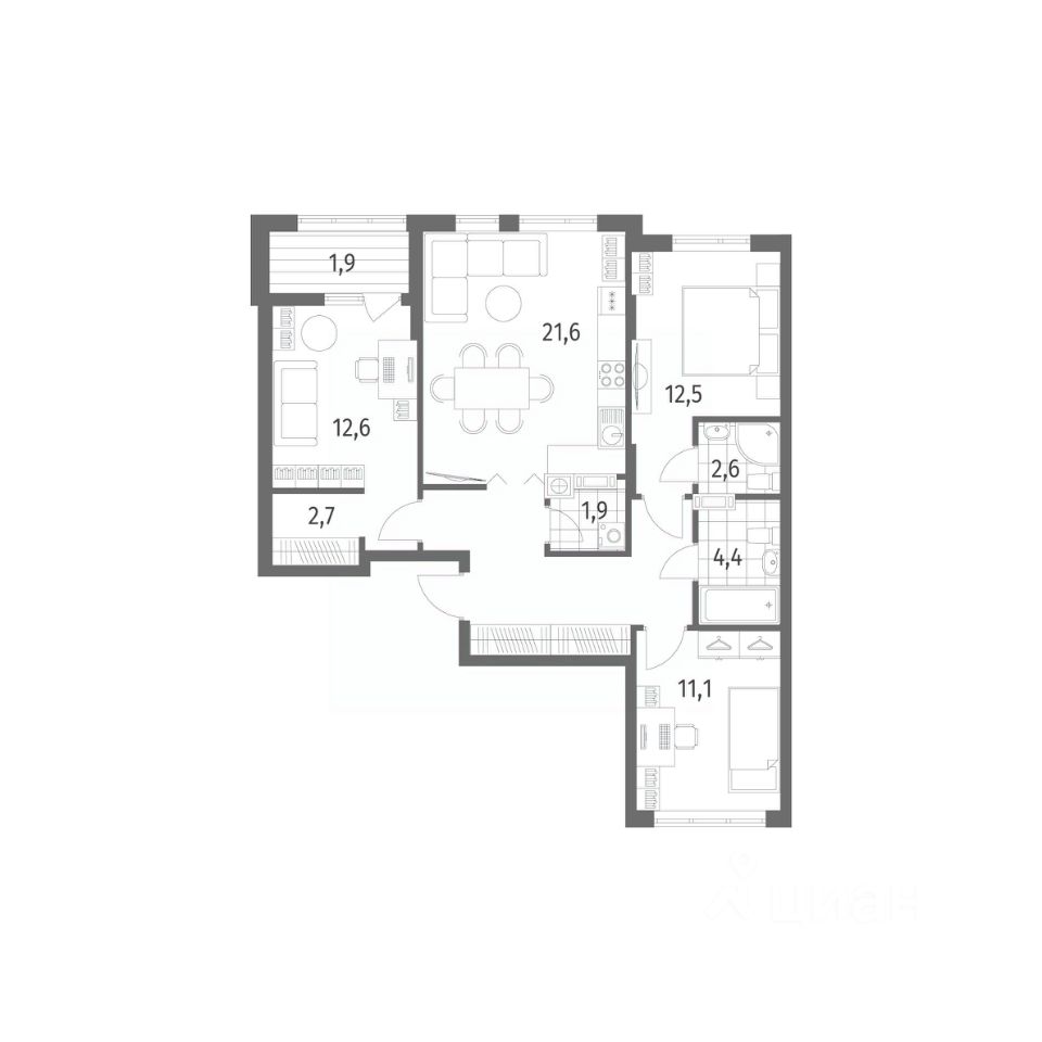 в Дом на Красной от компании ГК "ТРЕСТ". Площадь кухни 21.6 м². Жилой комплекс комфорт-класса "Дом на Красной" расположен в Центральном районе Калининграда на пересечении улиц Красная и Псковская. Жилой комплекс включает в себя два дома высотой 8 этажей. Срок сдачи намечен на 4 квартал 2026 года.