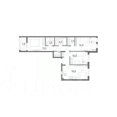 в Дом на Красной от компании ГК "ТРЕСТ". Площадь кухни 16.6 м². Жилой комплекс комфорт-класса "Дом на Красной" расположен в Центральном районе Калининграда на пересечении улиц Красная и Псковская. Жилой комплекс включает в себя два дома высотой 8 этажей. Срок сдачи намечен на 4 квартал 2026 года.