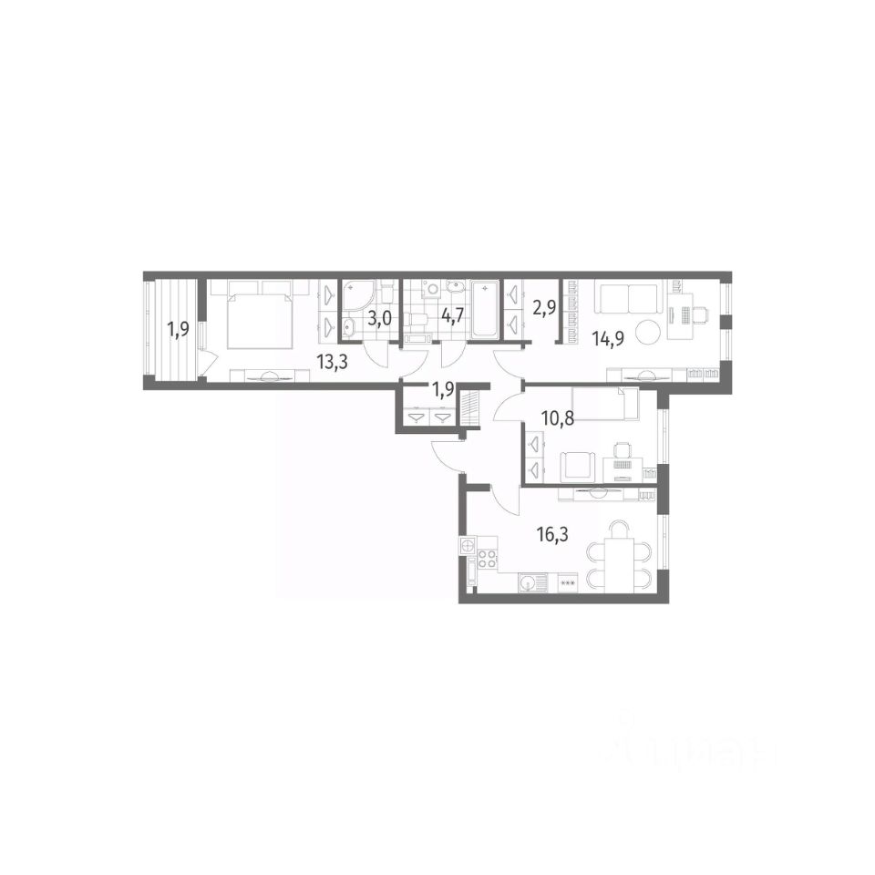 в Дом на Красной от компании ГК "ТРЕСТ". Площадь кухни 16.3 м². Жилой комплекс комфорт-класса "Дом на Красной" расположен в Центральном районе Калининграда на пересечении улиц Красная и Псковская. Жилой комплекс включает в себя два дома высотой 8 этажей. Срок сдачи намечен на 4 квартал 2026 года.