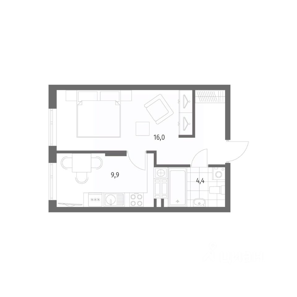 в Дом на Красной от компании ГК "ТРЕСТ". Площадь кухни 9.9 м². Жилой комплекс комфорт-класса "Дом на Красной" расположен в Центральном районе Калининграда на пересечении улиц Красная и Псковская. Жилой комплекс включает в себя два дома высотой 8 этажей. Срок сдачи намечен на 4 квартал 2026 года.