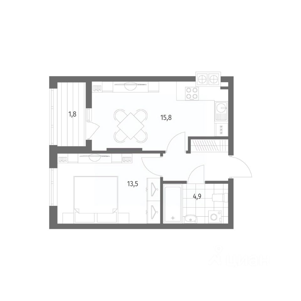 в Дом на Красной от компании ГК "ТРЕСТ". Площадь кухни 15.8 м². Жилой комплекс комфорт-класса "Дом на Красной" расположен в Центральном районе Калининграда на пересечении улиц Красная и Псковская. Жилой комплекс включает в себя два дома высотой 8 этажей. Срок сдачи намечен на 4 квартал 2026 года.