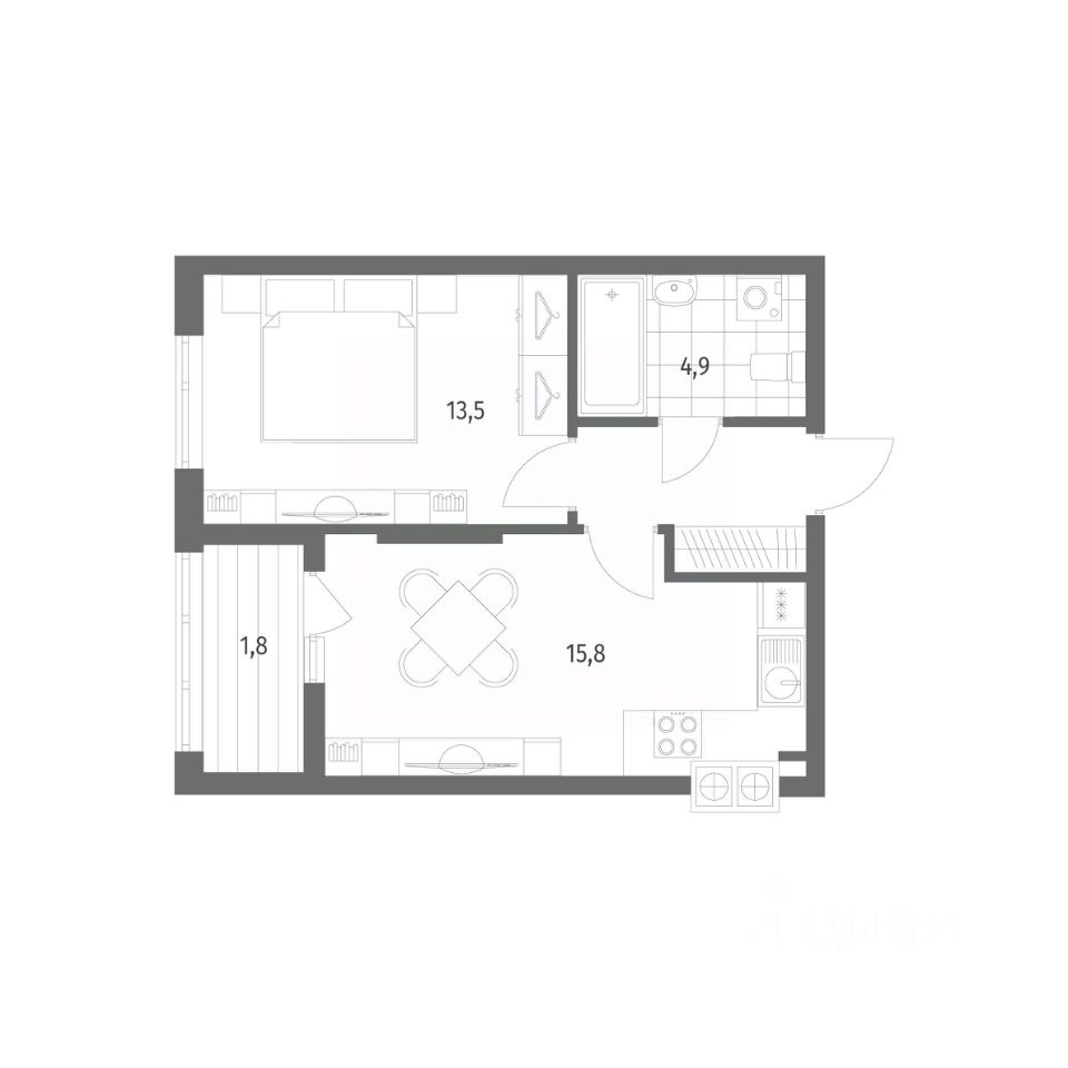 в Дом на Красной от компании ГК "ТРЕСТ". Площадь кухни 15.8 м². Жилой комплекс комфорт-класса "Дом на Красной" расположен в Центральном районе Калининграда на пересечении улиц Красная и Псковская. Жилой комплекс включает в себя два дома высотой 8 этажей. Срок сдачи намечен на 4 квартал 2026 года.