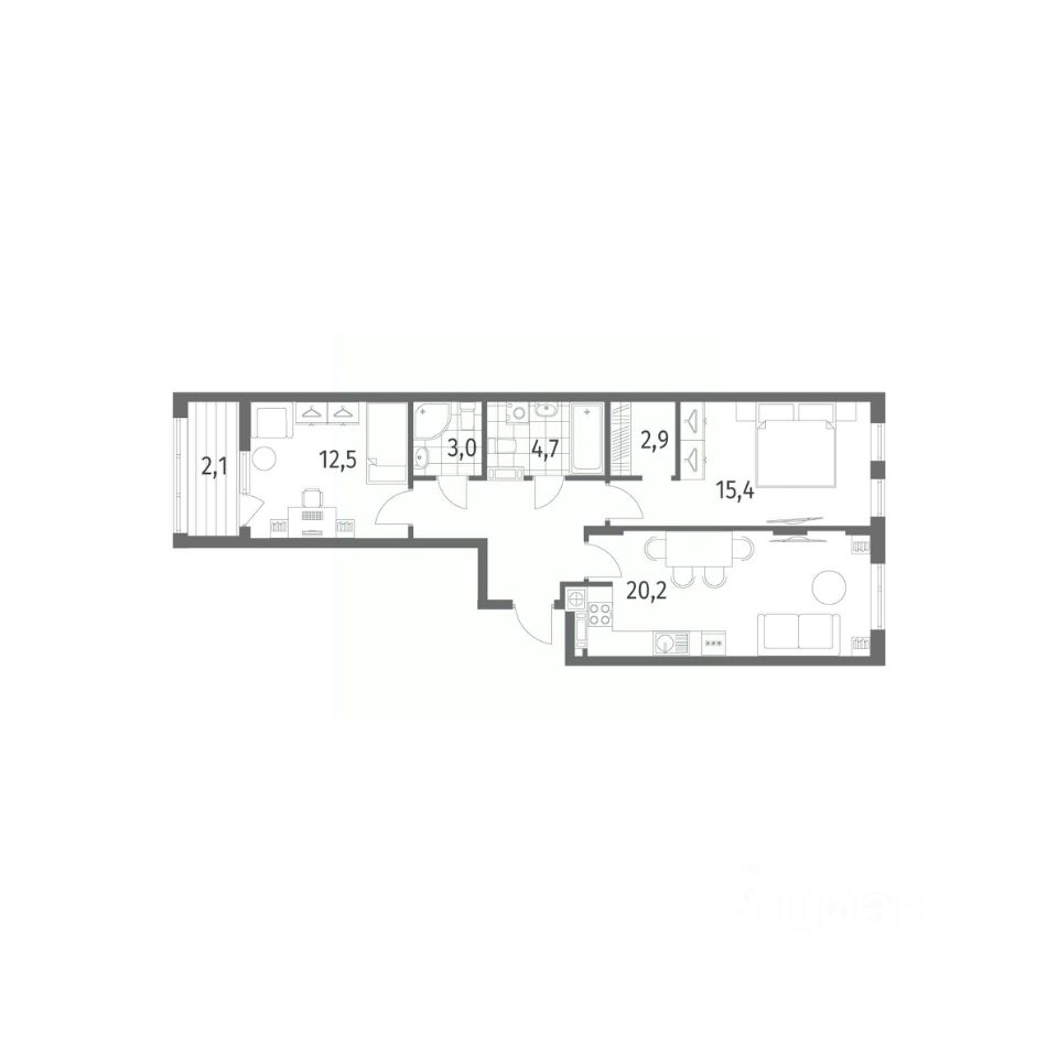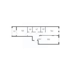 в Дом на Красной от компании ГК "ТРЕСТ". Площадь кухни 20.2 м². Жилой комплекс комфорт-класса "Дом на Красной" расположен в Центральном районе Калининграда на пересечении улиц Красная и Псковская. Жилой комплекс включает в себя два дома высотой 8 этажей. Срок сдачи намечен на 4 квартал 2026 года.