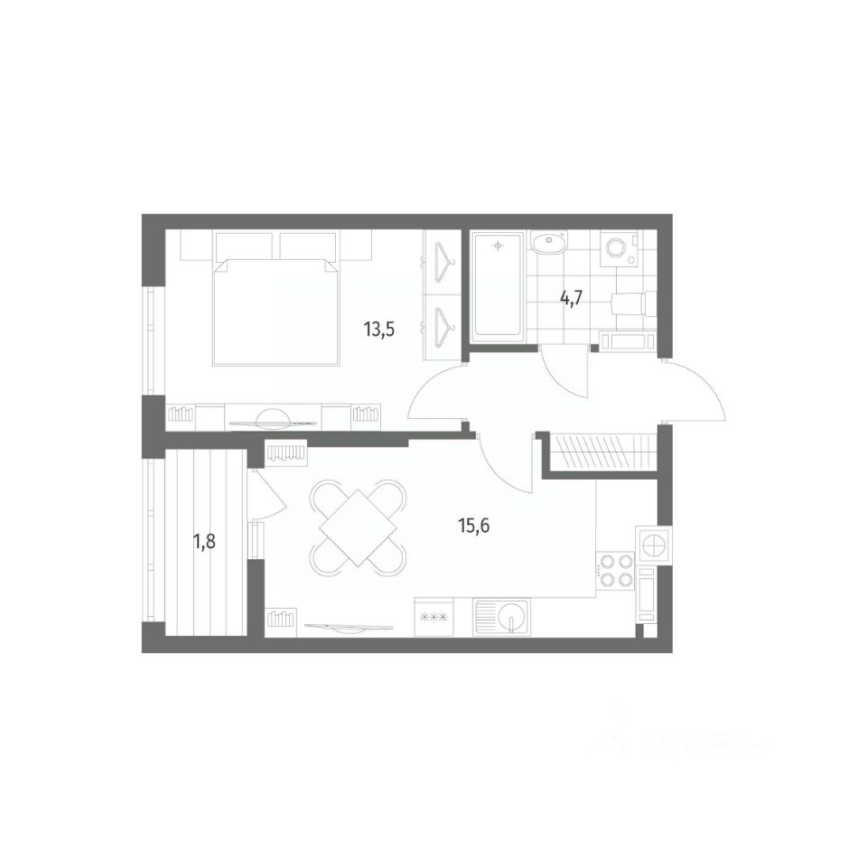в Дом на Красной от компании ГК "ТРЕСТ". Площадь кухни 15.6 м². Жилой комплекс комфорт-класса "Дом на Красной" расположен в Центральном районе Калининграда на пересечении улиц Красная и Псковская. Жилой комплекс включает в себя два дома высотой 8 этажей. Срок сдачи намечен на 4 квартал 2026 года.