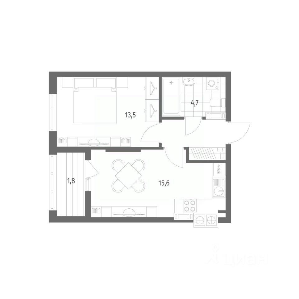 в Дом на Красной от компании ГК "ТРЕСТ". Площадь кухни 15.6 м². Жилой комплекс комфорт-класса "Дом на Красной" расположен в Центральном районе Калининграда на пересечении улиц Красная и Псковская. Жилой комплекс включает в себя два дома высотой 8 этажей. Срок сдачи намечен на 4 квартал 2026 года.