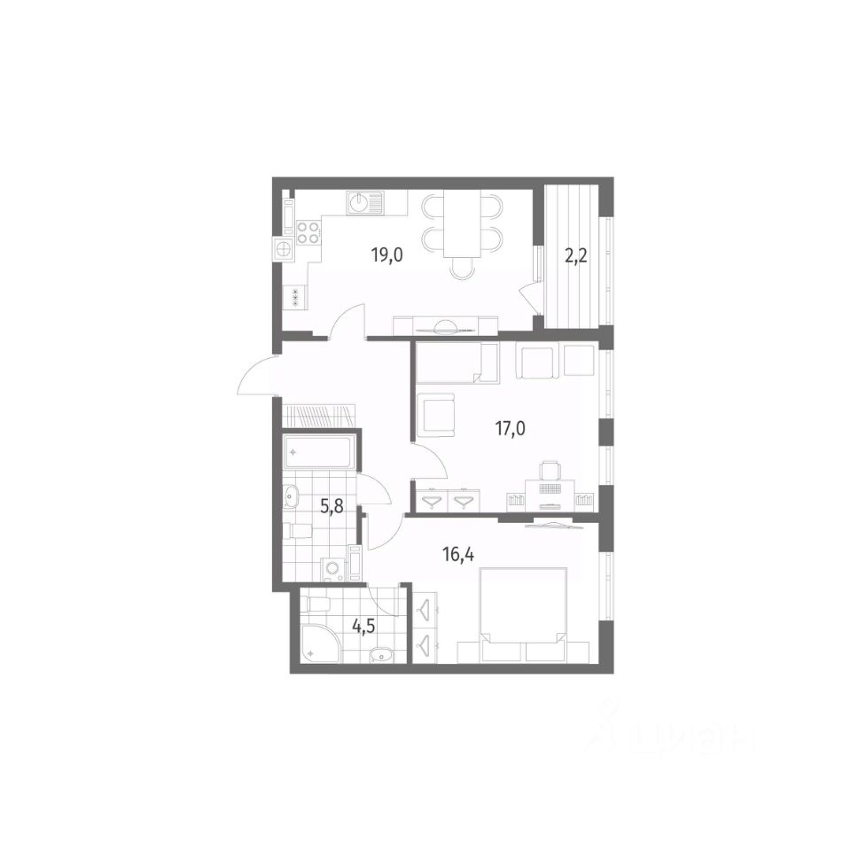 в Дом на Красной от компании ГК "ТРЕСТ". Площадь кухни 19 м². Жилой комплекс комфорт-класса "Дом на Красной" расположен в Центральном районе Калининграда на пересечении улиц Красная и Псковская. Жилой комплекс включает в себя два дома высотой 8 этажей. Срок сдачи намечен на 4 квартал 2026 года.