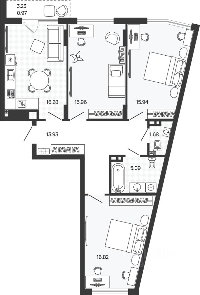 Площадь кухни16,3 м²
