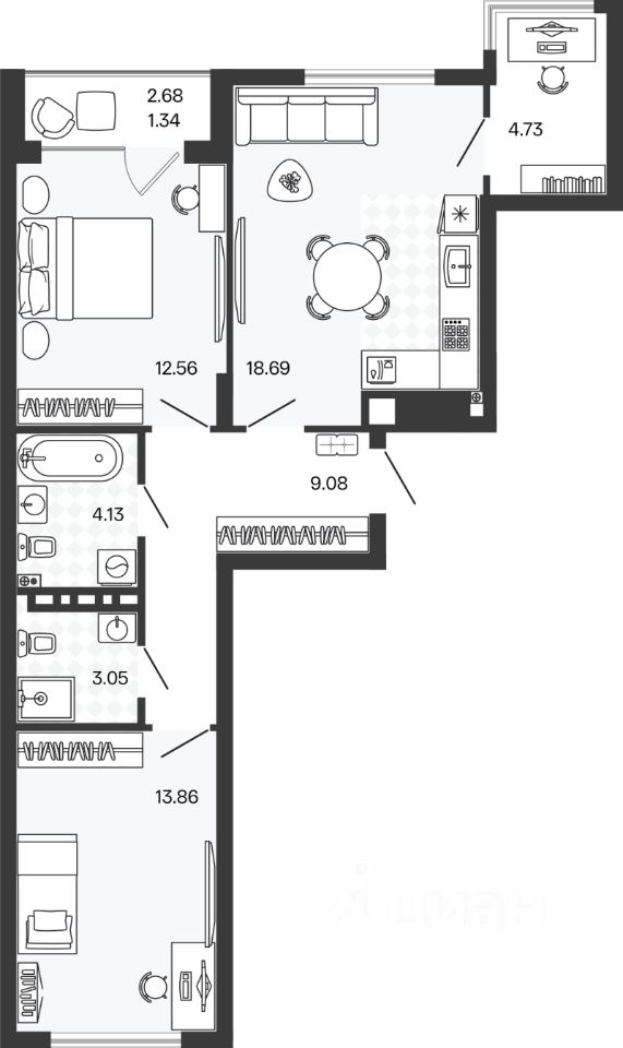 Благоустроенная инфраструктура, где мы продумали зоны отдыха, площадки активности, пространств для работы и разнообразного коммерческого наполнения.