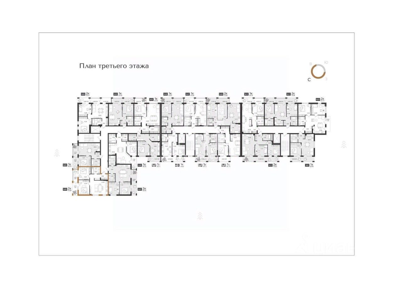 Удачное планировочное решение позволяет организовать комфортное пространство из видовой спальни и просторной кухни-гостиной площадью 21,20 кв.м., северо-западную сторону света.
