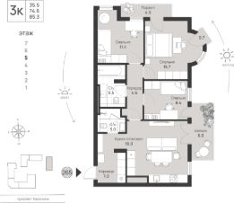 Общая площадь85,3 м²