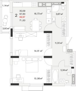Общая площадь70,4 м²