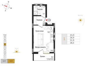Общая площадь28,4 м²