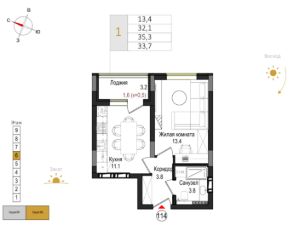 Общая площадь33,7 м²
