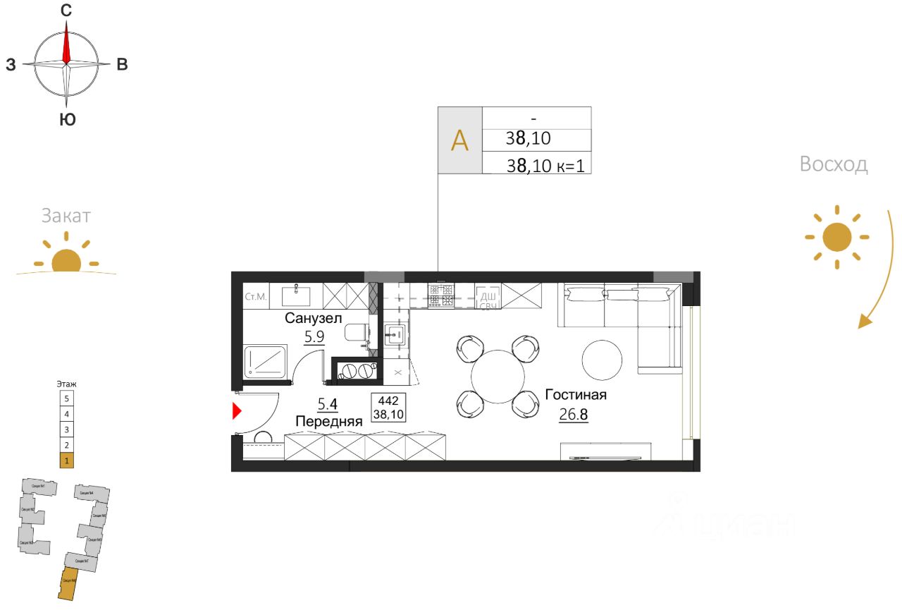 Комлекс состоит из восьми корпусов с различными вариантами планировочных решений от студий площадью 28,5 м2 до апартаментов площадью 82,1 м2 с открытыми террасами. Высота потолков - 3 м. Предусмотрен подземный паркинг на 286 мест.