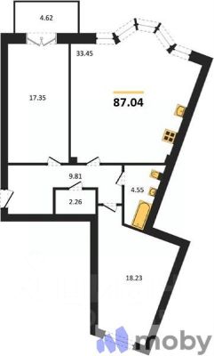 - Двухкомнатные квартиры (25 ед.) площадью от 45,74 до 90,27 кв.м.