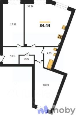 Квартира: 2 к 84,44 кв.м., 1 этаж в комплексе Резиденция, 1 очередь, корп.1, сдача: 2кв. , этажей: 5, адрес Пионерский г., Комсомольская ул., д. 19, Застройщик: Зеленый Город.