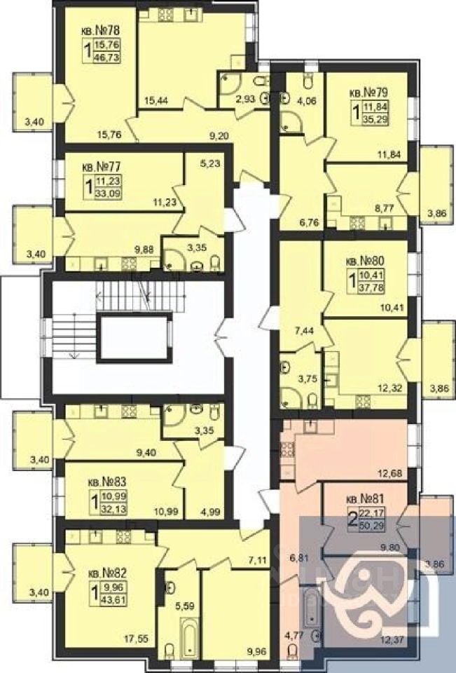 - Нежилые помещения (93 ед.) площадью от 3,74 до 9,57 кв.м.