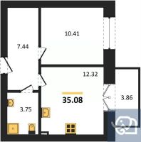 Квартира: 1 к 35,08 кв.м., 3 этаж в комплексе Резиденция, 1 очередь, корп.1, сдача: 2кв. , этажей: 5, адрес Пионерский г., Комсомольская ул., д. 19, Застройщик: Зеленый Город.