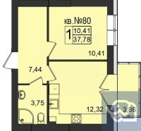 - Однокомнатные квартиры (72 ед.) площадью от 27,44 до 49,54 кв.м.