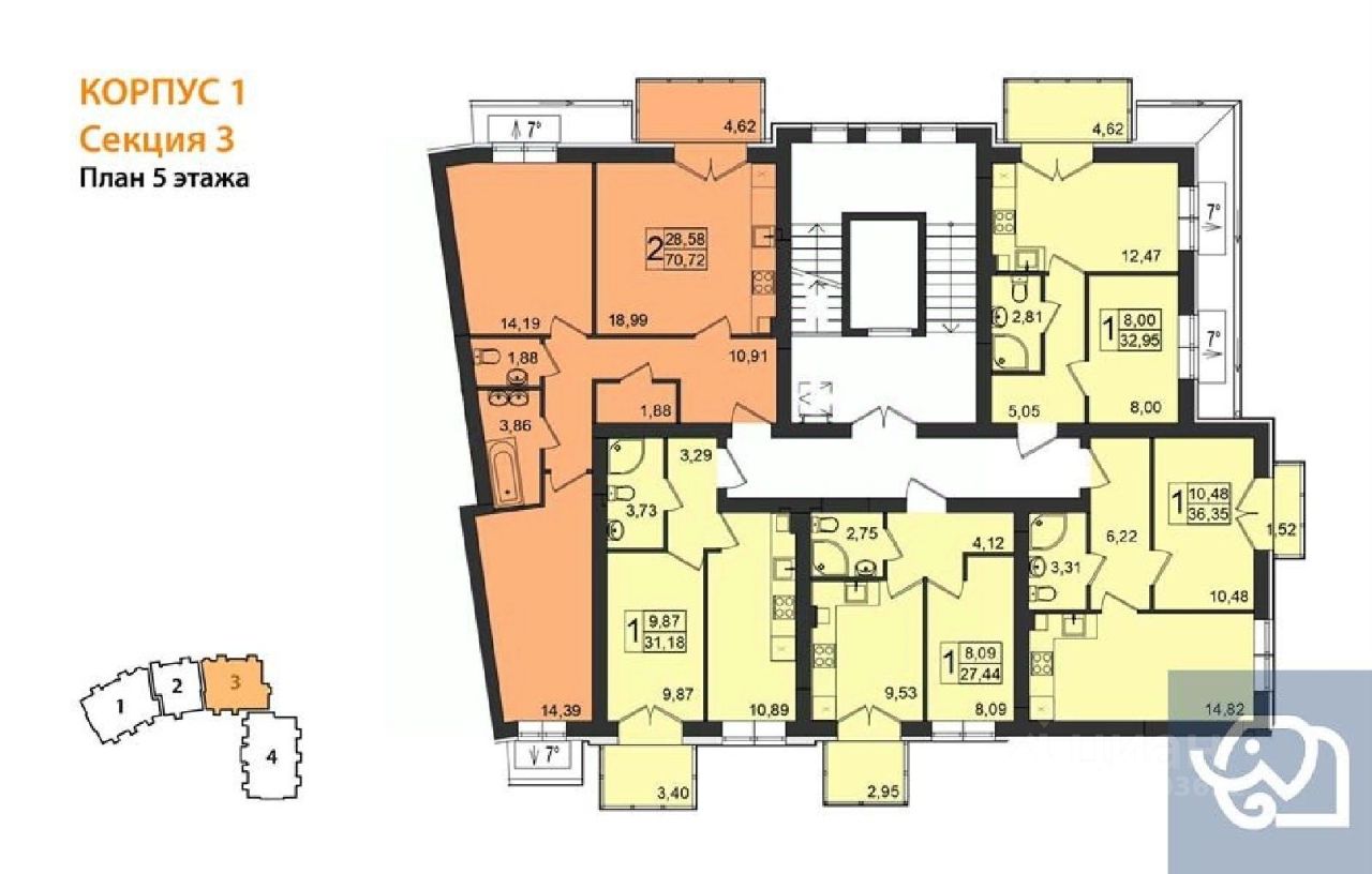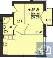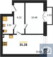 Квартира: 1 к 35,28 кв.м., 5 этаж в комплексе Резиденция, 1 очередь, корп.1, сдача: 2кв. , этажей: 5, адрес Пионерский г., Комсомольская ул., д. 19, Застройщик: Зеленый Город.