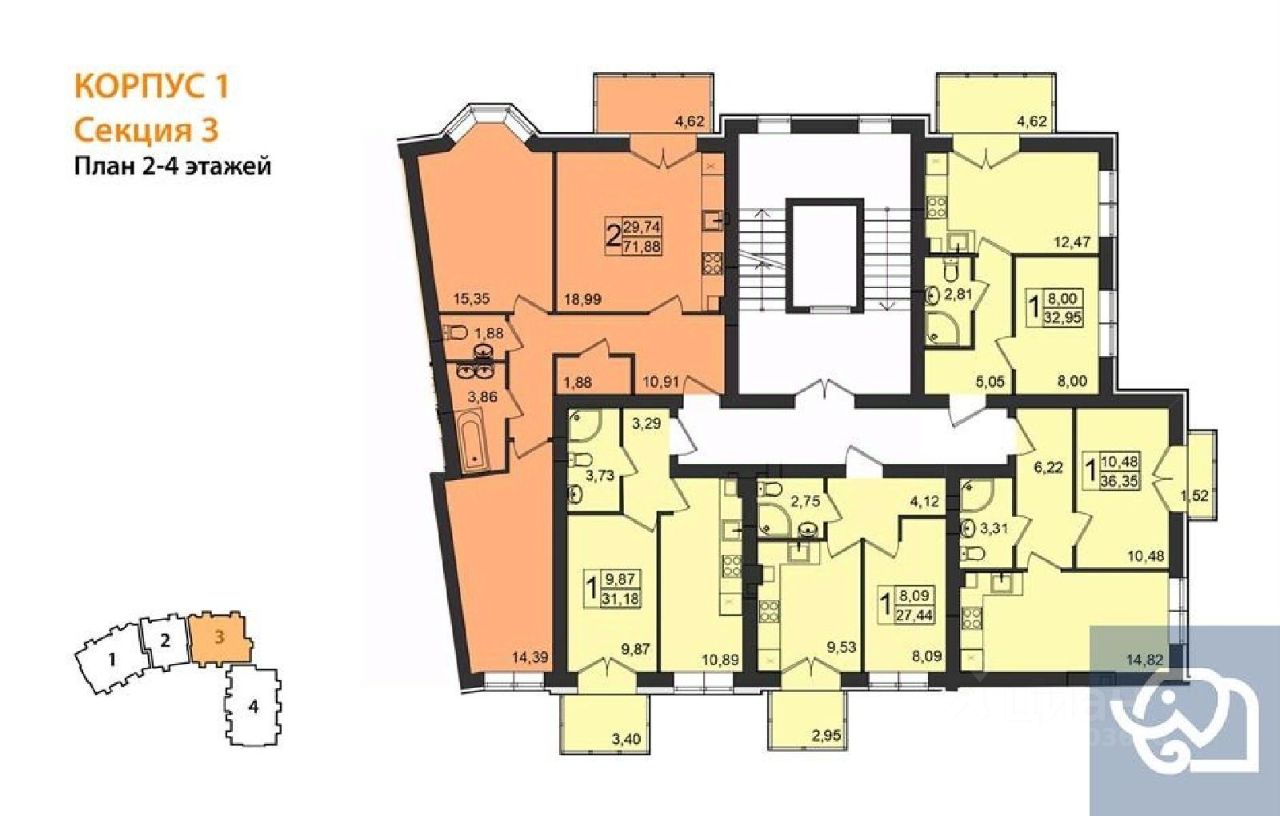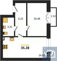 Квартира: 1 к 35,28 кв.м., 3 этаж в комплексе Резиденция, 1 очередь, корп.1, сдача: 2кв. , этажей: 5, адрес Пионерский г., Комсомольская ул., д. 19, Застройщик: Зеленый Город.