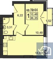 - Однокомнатные квартиры (72 ед.) площадью от 27,44 до 49,54 кв.м.