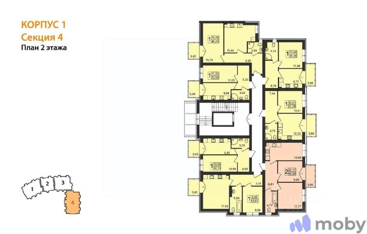 Квартира: 1 к 41,23 кв.м., 2 этаж в комплексе Резиденция, 1 очередь, корп.1, сдача: 2кв. , этажей: 5, адрес Пионерский г., Комсомольская ул., д. 19, Застройщик: Зеленый Город.