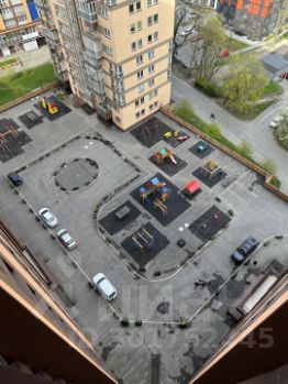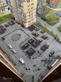 У дома огороженная территория с видеонаблюдением, двор без машин. От квартиры до подземного паркинга можно спуститься на лифте. Кроме того есть грузовой лифт. На территории двора есть детская и спортивная площадки.