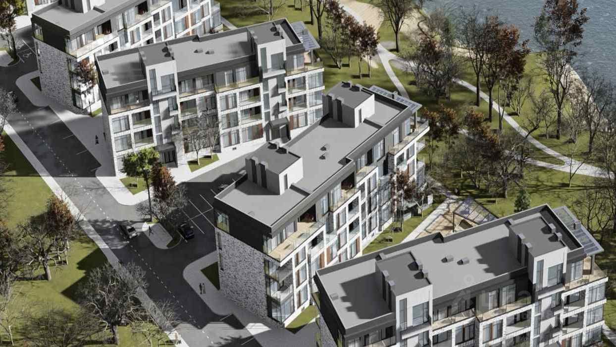 - Весь комплекс представляет из себя пять четырехэтажных домов и гостиницу, выполненные в едином стиле, а также СПА-комплекс с бассейном, летними верандами и банным комплексом.