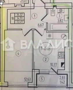 Общая площадь квартиры с лоджией 36.32 м.кв.