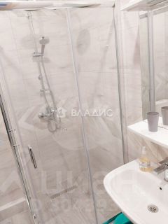 Ванная комната в кафеле с душевой кабиной.