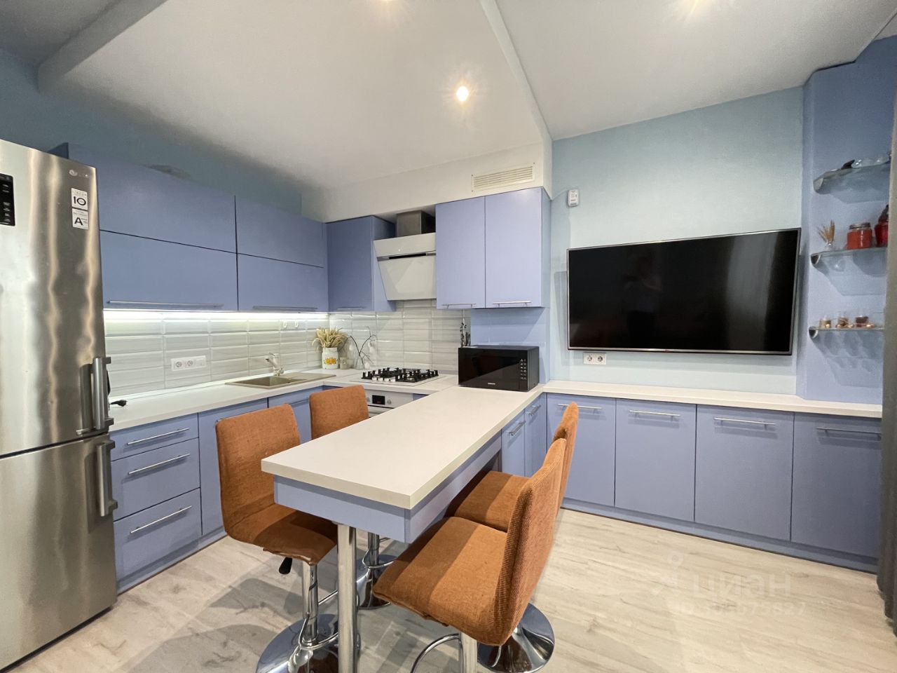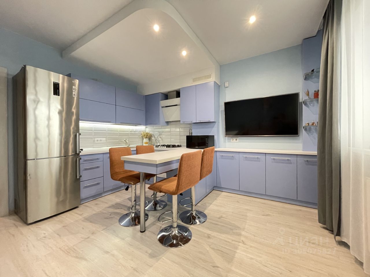 В квартире хороший ремонт из европейских материалов, сантехника премиум-класса.