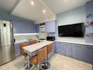 Остаётся вся встроенная мебель и техника (холодильник, стиральная машинка, посудомоечная машинка, эл. духовой шкаф, варочная поверхность, вытяжка).