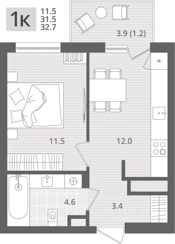 32,7 м²