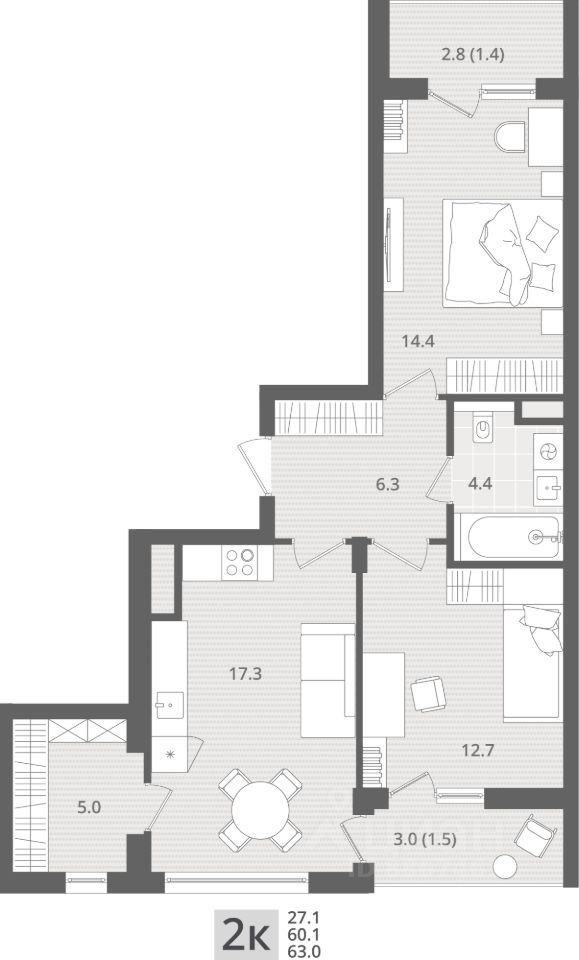 Продаётся 2-комнатная квартира в строящемся доме (Дом 1.1), срок сдачи: IV-кв. 2026, общей площадью 63 кв.м., на 2 этаже. Новый жилой комплекс "МОре" от Строительной компании "Меркурий" расположен по адресу: Калининградская область, г. Пионерский, пос. Рыбное.