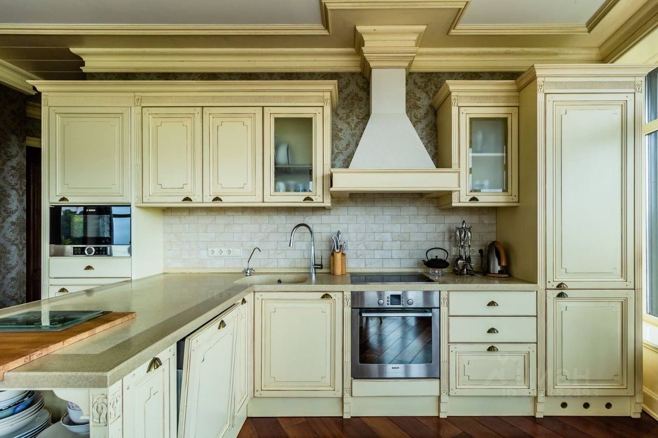 - Кухня итальянской фабрики в классическом стиле с большой столешницей и большим обеденным столом.