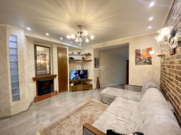 Продается квартира индивидуальной планировки с крытой террасой и сауной на первом этаже шестиэтажного кирпичного дома 2002 года постройки.