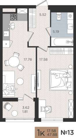 Продаётся комфортабельная 1-комнатная квартира 13 на Советском проспекте, 50 в ЖК "МОЙ ГОРОД"