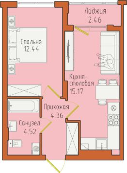 Однокомнатная квартира 28 на пятом этаже у Балтийского моря в Светлогорске.